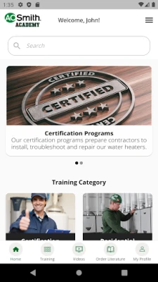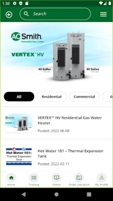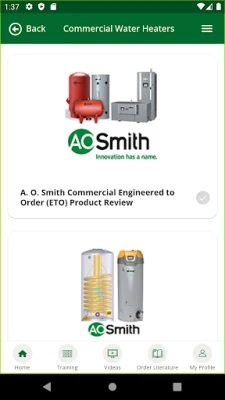 This tool is designed to aid people who sell A. O. Smith & John Wood products with online learning for the most current products sold. The app provides training modules, spec sheets, sales information, videos, and news.