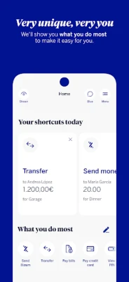 Forget about searching for the same contact over and over again to send them a Bizum, or constantly scrolling through the menu to find the products that interest you most. We'll organize them and display them in the home menu!
