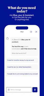 ● Have questions? Blue, our virtual assistant, has been updated with AI to be even more responsive to everything you need.