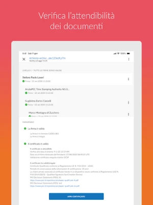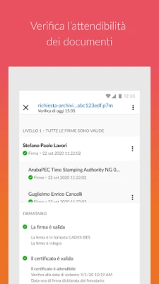 Firma Digitale Aruba è l’app di Aruba per utilizzare la Firma Digitale Remota e le Marche temporali su smartphone e tablet. Consente la firma qualificata e marcatura temporale dei documenti secondo la vigente normativa Italiana. Il Software permette anche la verifica dei documenti firmati digitalmente e/o marcati temporalmente.