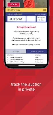 Created by Knight Frank, Singapore's leading real estate auction house, KF Bidding combines the fairness and transparency of in-person auctions with the flexibility of mobile bidding. Now, you can attend live auctions remotely and enjoy secure, convenient participation from wherever you are.