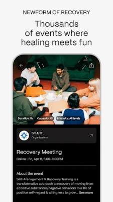 Join nearly 500,000 people who are redefining what recovery looks like. This sober community app connects you to a full spectrum of free sober experiences: in-person meetups, virtual support groups, creative workshops, fitness events, safe discussion spaces, all powered by trusted recovery organizations with peer support at the core.