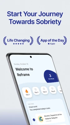 Manage and change your drinking habits so that you can drink less and live more, thanks to the #1 alcohol reduction app. Here at Reframe, we do science, not stigma. Is your goal to take control of your habits, cut back on drinking, or to quit addiction? Reframe is your go-to sobriety tool and drinking coach. With a neuroscience-based approach, daily tasks, and live meetings, you’ll stay accountable and track your progress. Experience the full power of our sobriety program that gives you access to a 7-day free trial to help you quit now.