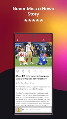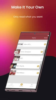 * Customized news feed - add topics of specific players, trades, national football conference, or draft news to get customized news articles delivered directly to your feed.