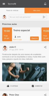 Interaja com sua rede pela timeline do seu centro de treinamento, acompanhe sua evolução com fichas de exercícios e históricos de carga, visualize avaliações físicas detalhadas e faça check-ins nas aulas de forma prática e rápida.