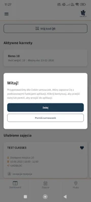 wyświetlanie kodu QR umożliwiającego wejście do klubu