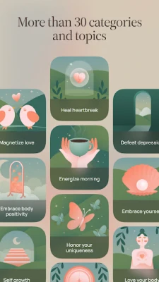 - Carefully curated affirmations for every area of your life, organized into 30 categories
